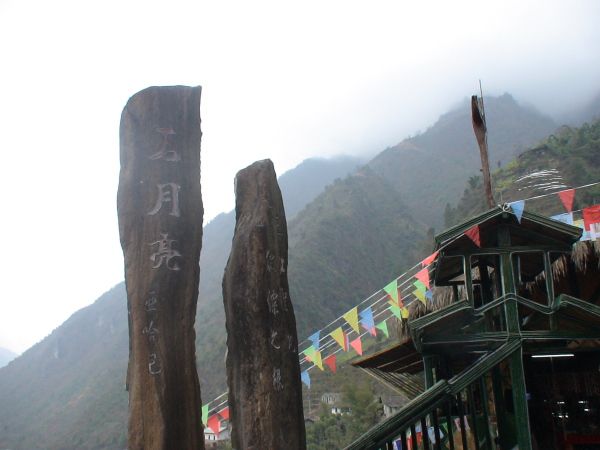 站在石月亮观景台向北望去,只见脚下汹涌的怒江,在高黎贡山和碧罗雪山的千峰万壑中,像一条蓝色的丝带,飘向远方的天际,而不远处高黎贡山上的那个巨大溶洞石月亮,正是大自然在这幅美丽画卷里的点睛之笔。石月亮“亚哈巴”--傈僳族的发祥地,今天终于展露出她最美的容颜。