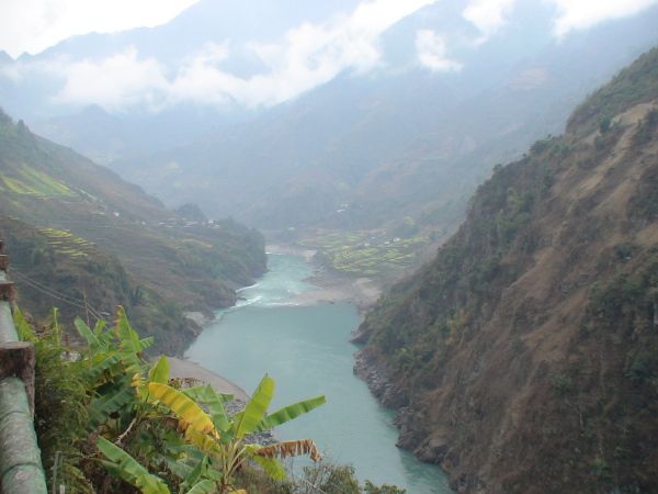 九点到贡山县城,今天这里天气晴朗。不做停留穿城而过。记得出城不久,在怒江对面的山腰间也看见有一条公路沿江并行,碧绿的江水中有一些钢板制成的漂流排,好像在修水电站,心里因此掠过一丝忧虑。