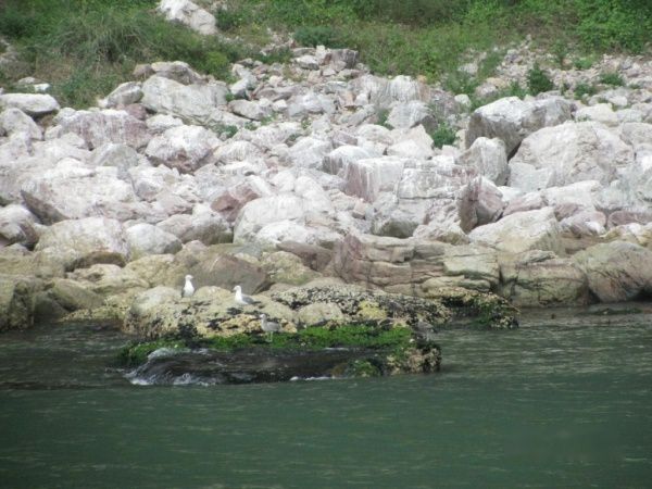 万鸟岛,顾名思义,鸟应该很多才对。据说一抬手就能触碰到鸟儿的羽翼,但我们只零零星星看到了一些。船家的解释是早上的一拨游客已经将海鸥们喂得太饱,他们已不屑于我们投掷的面包屑了。看来早起的鸟儿有虫吃,晚到的人儿没鸟看啊。