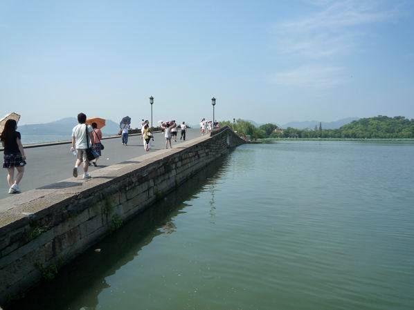 8月18日 第二天:早晨杭州朋友去接站,我们把包放在朋友处,为了节约时间,我们从京杭大运河附近艮山路租了个私家索纳塔轿车包200/天,我们车开到西湖边断桥,人很多。走在湖边迎面吹来阵阵凉风很舒服,风景很不错,我们在湖边、桥上拍了很多照。过了断桥,