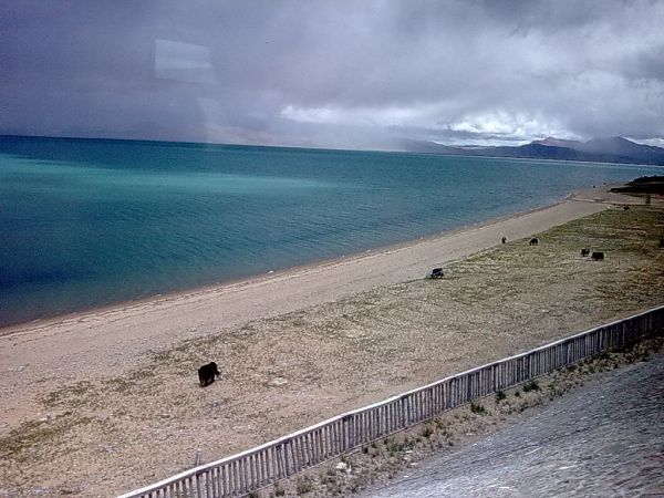 到西宁已经是下午六点了,乘着短暂的停站时间,我下火车狂吸了几口air,没啥感觉,海拔2700,也不过如此嘛。到格尔木已经是午夜了,很遗憾没有看到青海湖和沿途美丽的油菜花。格尔木是青藏铁路二期工程的起点,列车特意将此段安排在白天,这样乘客就可以沿路欣赏高原美丽的景色了。过了昆仑山就进入了可可西里无人区,在长达几百公里铁路线上,我第一次感受到触手可及的蓝天白云,近在咫尺的高原动物,一望无际的广阔草原……以前只能在电视上才能看到的美景现在一一浮现在我眼前。我忘记了长途跋涉的疲倦,忘记了高原缺氧带来的头痛,尽情的沉浸在这美妙的世外桃源中,尽管我无法下车身临其境。