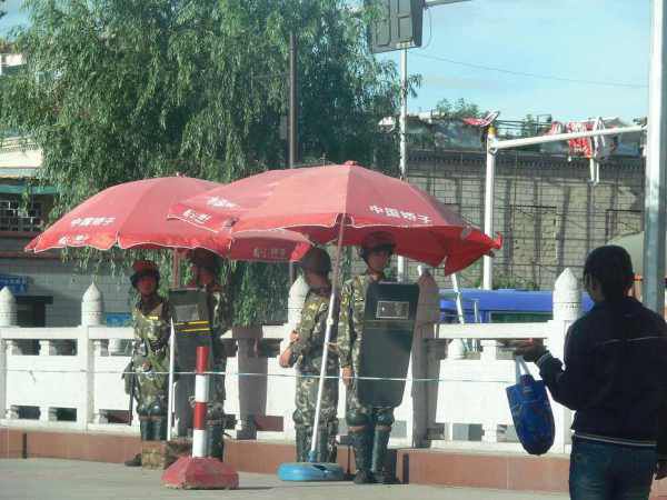 注:建议第一次去西藏的朋友最好选择硬卧,因为睡眠的缺乏加上高原缺氧可能会加重你的高原反应,还有就是不要特意暗示自己会有高原反应,否则自讨没趣。 D4:这天属于休整状态,出门小逛了下,留下两个印象:1、拉萨的都市味道似乎过于浓重,各种各样的商场、食府、娱乐场所充斥着大街小巷,很难想象如果没有布达拉、大昭寺,拉萨还能叫Lhasa吗?2、沿街全副武装的武警给圣城增添了不少神秘的色彩,自3.14后,武装警察便开始24小时站岗,今年正逢国庆60周年,这样的戒备更是少不了,说实话,现在拉萨的治安比哪都好,连小偷都不敢上街了。