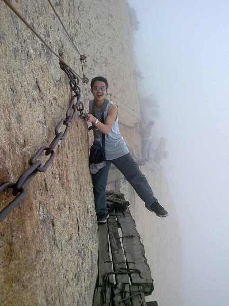 华山被称为天下奇险第一山,这句话果然不假,难爬不说,让你冒冷汗的地方是一个接一个,真后悔没买个意外险。其中最惊险的地方要属空中栈道了,在悬崖峭壁上行走,旁边就是万丈深渊,除了安全绳你一无所有,只可进不可退,哭爹喊娘也白搭,刺激。