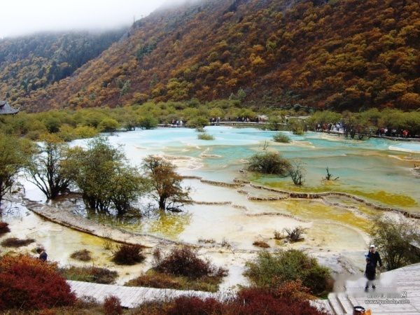 到黄龙游玩的当天天公不作美,一直是阴天,没有了阳光的照射,黄龙显得有些苍白。