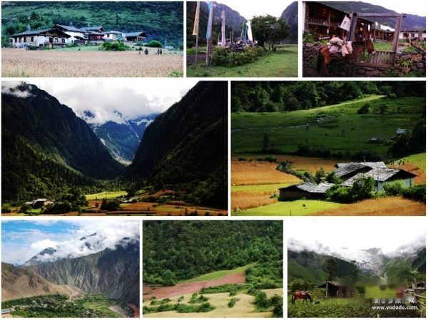 ◆雨崩:雨崩位于梅里雪山主峰卡瓦格博南侧的神女峰与五冠峰的脚下,是距离梅里雪山最近、海拨最高的村庄。它的汉语译音为“堆积的绿玉”,但现在很多攻略上都写着,雨崩的意思为“经书”。这种说法源于从下雨崩村通往神瀑的路上,有一堵形似经书的山岩,当地人称之为“天篆神书”。雨崩在藏民心中的位置是神圣的,著名的“梅里内转”,它是必经之地。雨崩的生态保持得很好,一方面是因为交通不便,外来人不容易进入,另一方面与当地藏民的佛教信仰密不可分——山是他们的神山、树是他们的神树,很千年的古树、濒于灭绝的野生动物,都是雨崩人民用看似最原始的方式保存下来的。