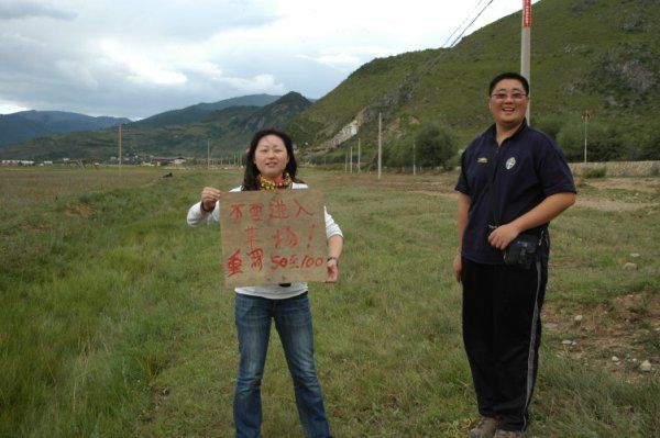 点的地方后停车带我们进入草场。草场边上还有一张提示人们不要随意进入的纸牌(有照片为证),但是师傅说了他搞定,我们就十分大模大样的在里面闲逛了一圈。哈哈哈~