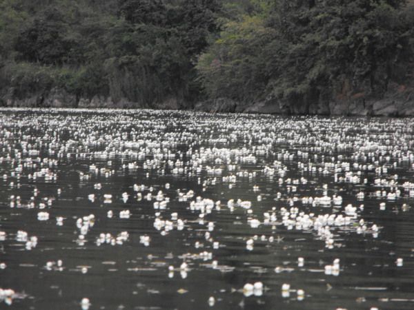 邛海很大因为政府的有效保护邛海的水质并没有受到太大的污染,水中生长的鱼虾很健康,还有一种当地人叫做菱角的植物,可食用味道类似于煮的胡豆。晒干后可入药。