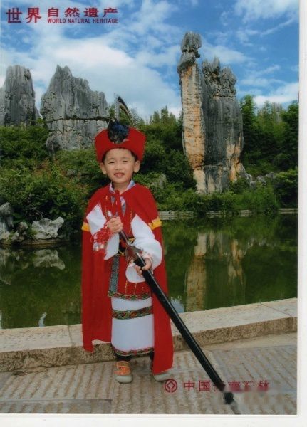第一站,我们到的是石林。导游交代我们,这儿是彝族萨尼人的集聚区,到那边要注意称呼,男的叫阿黑哥,女的叫阿诗玛。阿诗玛的服装告诉我们一些信息,主要在头饰上的小三角,有2个,是少女;一个,已经订婚。没有了,说明已经结婚了。