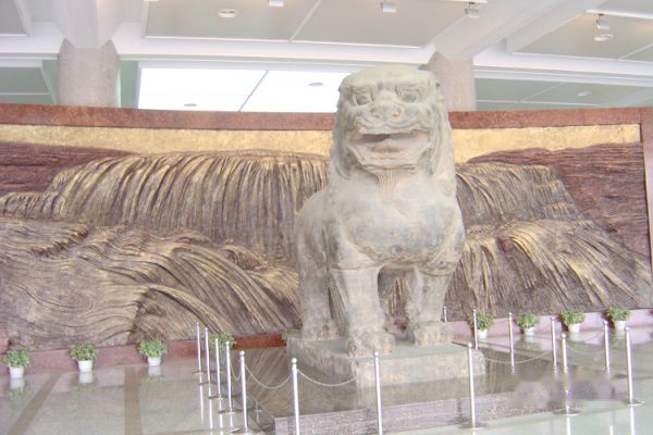 狮子,后面的雕刻很衬托狮的威武