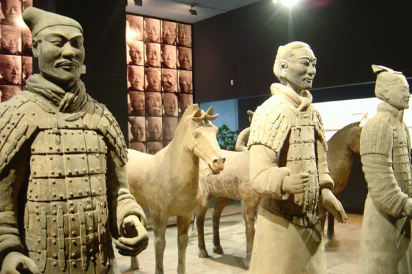 我们都不知道去省博该乘几路车,于是用走的,大概的方向还是知道的,沿着北大街走准没错,远远的看到钟楼的时候还是被雷到了,不知道,一个城市的中心居然还有马路中间的历史建筑,和想象的完全不一样,虽然听说很容易找到火车票代售点,虽然丹带着打印出来的天下民宿攻略,虽然后来才知道范范其实以前是在西安上学,但一开始其实我们还是很盲目,丹和我们分开之前,我们没有顺利的买到车票,钟楼青旅同样客满没有定到后2天的床位,也没有顺利的买到旅游年卡,也没有找到去博物馆的车,之后丹去找一个朋友带着她的快没电的手机就先走了,接下来就是我和范范,虽然钟鼓楼就近在脚下了,但依着范范的计划我们继续找去博物馆的车,在大的夸张的地下通道里让我一开始彻底丧失了方向感,我们问了几个路人才知道乘游8是可以到的,也就是我们要找的610,而到站是叫翠华路,站名没有一点的提示,这也是难倒我们的地方,就好像在武汉坐车去省博车站在三官殿一样,anyway,就这样10点多我们终于才到,在门口要求存我的背包,于是把相机手机钱包贵重物品都放在范范包里帮我拿,门口领了票马上就可以进馆,这大概就是非休息日的好处了,在长沙进省博才是百般周折,进门一只大狮子超威风的,有国际友人拍照留念,看了看就进展厅了,没想到里面人还是不少的,短信问丹在哪里,回说也过来了,文物这个东西,对我来说是什么呢?很简陋很古朴,大大小小奇形怪状,可是其中承载的历史我却是真的一点也读不出,即使这样每到一个地方我都会把博物馆作为一站,一是因为免费一是因为实在喜欢博物馆的环境,不会吵吵闹闹温度超常的舒适,可以随意的找地方休息,范范租了讲解器,和她一起听了一些,更多时候我只是静静看,世界的纷繁似乎就被这些地底下的怪物吸收消化了一般,传说中的人俑也提前在博物馆见到了,整个的超神奇,还真是真人比例做的,还真是表情各异,立在展厅里又是另一种感觉,很精致很完整。逛博物馆的时间里和丹碰了头,带过来了一个男生,给她做专属的讲解,可走着走着就走散了,还是我和范范一起,虽然只是青旅偶遇的女生,却能完全的信任,聊天也是自然随意,出到博物馆门口取了包,准备走碰到有卖明信片,虽然不是全部都需要,但是10元3本的价格便宜的夸张,没有多犹豫就买了,收集和发出各地的明信片也是每次出行很热衷的事情,发出那些已经去过的景点,给未到的地方留下纪念,把这种古老的方式继续发扬光大。