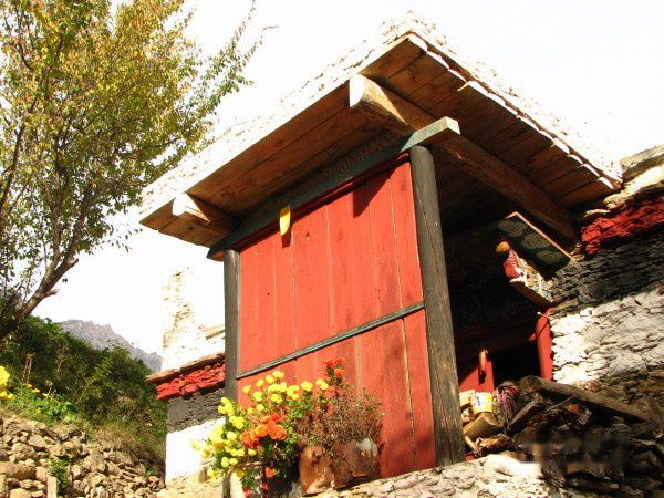 一路,藏民的房子三三两两,散落周边,每家每户都有小径通往。我总是一不小心就闯到藏民家的围场里去了。走错了道,又不甘心回头,便一路遇坡爬坡,遇墙翻墙,差点没去爬藏民家的房顶。总之一路披荆斩棘,蹭得一身泥不说,还惹得乌鸦叫,家狗吠,甚是狼狈。幸好路遇的藏民都很友善,不时出手指点我迷津。即使走错路误闯了藏民家,他们也不生气责怪,大多微笑注视,似乎觉得很好玩儿。