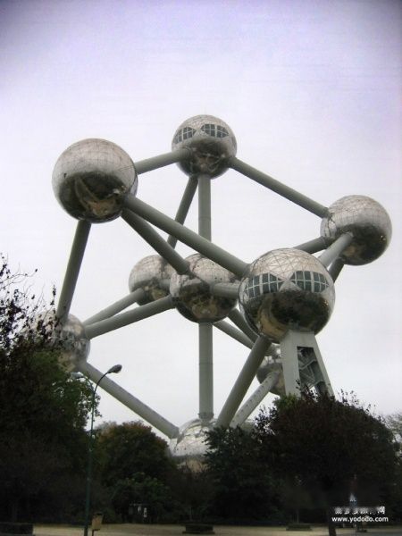 火车到达布鲁塞尔已经是下午了。找到旅馆安顿下来便乘车去郊区的“原子球”。这是1958年世博会的标志建筑,由九个金属圆球用钢管连接而成。园球内为各种主题的科技展览馆。时近傍晚,展览馆已经闭馆,好在我们本也无意参观,到此一游而已。