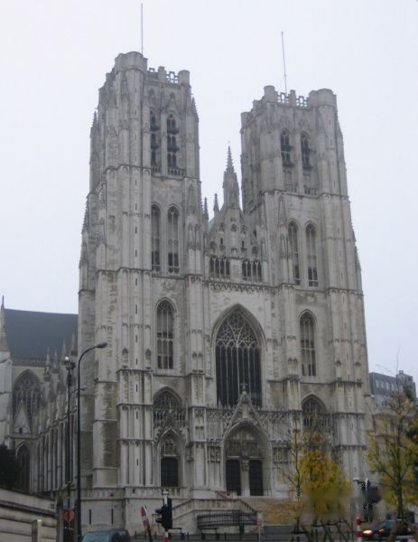 离开圣于贝尔长廊,步行去圣米歇尔大教堂(Cathedrale St. Michel),教堂始建于1047年,正面左右两边是高高的塔楼,看起来与巴黎圣母院差不多,但比后者要高些。