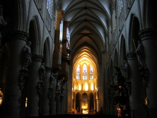 教堂内部极其华丽,每个粗大的廊柱上都雕刻着立体的人物,据说比利时的国王曾在这里举行盛大的婚礼,从而声名大增。