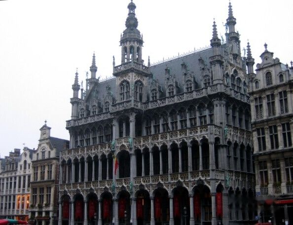 夜里开始下雨,至清晨稍止。先去撒尿小孩的铜像。铜像在一个极不起眼的街角,非常的小,想不到竟有如此大的名气。与铜像不远,即是市中心的大广场,首先进入眼帘的是高高耸立的尖塔和外墙上有一排排雕像的大楼,这就是极负盛名的市政厅。
