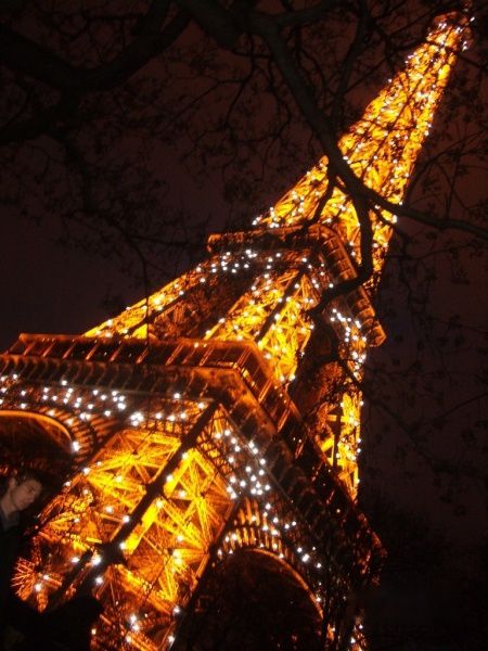 夜幕下的埃菲尔巍峨挺立,极为壮观。塔顶可俯瞰巴黎市容。