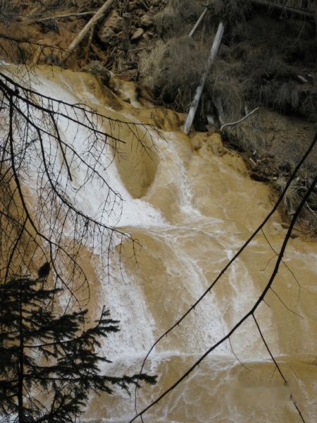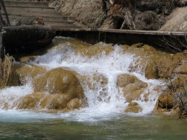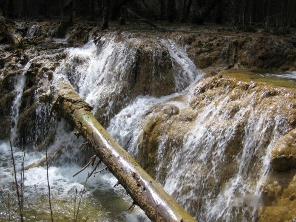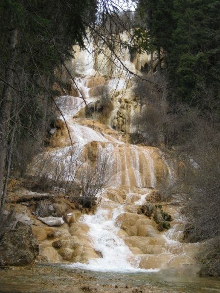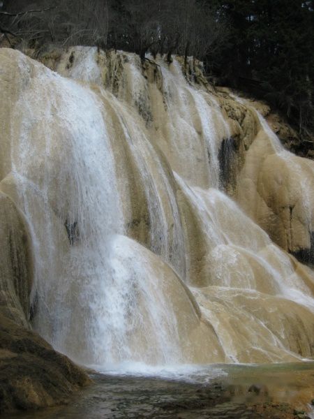 我们车行至牟尼沟时天气已经变得大好,司机把我们放下车规定我们看看瀑布就回来哦!离好远就听到很大的水声,人走近才发现这个瀑布真的是与众不同,它的山体是被钙化的金黄色的山体,水流不是一泻千里而是根据山体的自然分段而顺势而下。落差达到100多米,宽度虽然不及九寨沟的瀑布群但是气场还是很强大。我就遗憾我的照相机为什么不是广焦呀!
