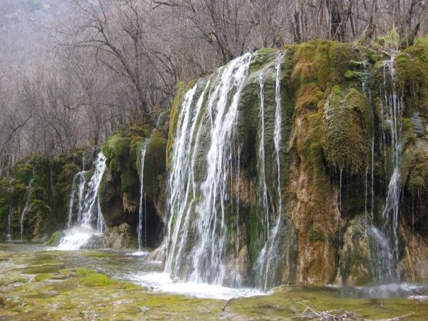 既然我跟丁姐都笃信徒步,所以我们沿着公路一直下行,往箭竹海方向前进。因为是淡季,所以景区的一些栈道是关闭的,我们只能选择沿着公路向下走。天似乎读懂我的心思,灰蒙蒙的。我们走到前方的栈道,看标示可以从此走到箭竹海。就在走下栈道后不久,丁姐发现了箭竹海瀑布,我看到它的那一刻精神为之一振。那是怎样的瀑布群呢,它的落差不大,水流也不是很大,但是这个瀑布最大的亮点在于它的山体,那是长满了青苔的山体,一股股白色的水流滑过青翠的山体,然后流淌到你的脚下,顺着山势奔跑着流向远方。