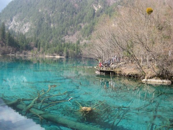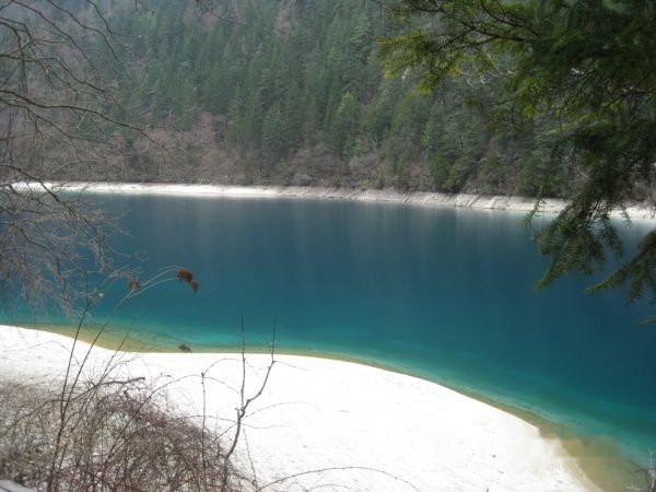 这里的海子就是高山湖泊,到了九寨就是来感受这些高山湖泊带给我们的美丽。一开始我对这里的景色并无太大感觉,因为这种高山湖泊,这种颜色的湖泊我早就见过,新疆的天池就是这样如同一块碧玉镶嵌在高山中,而湖泊周围的山上长满了树。再远些的远山上的积雪还未融化,我似乎回到了新疆回到了天池。说实话,我对九寨有点小小失望,因为它不及我想象中瑰丽,也没有梦境中虚幻而不真实。