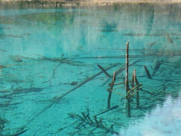 因为每个海子的水都是很清的,所以湖底的一切都看的很清楚,那些躺在湖底的树干最能引起人的注意,丁姐就一句一个“经典”的拍呀拍呀!反正她有3G的内存,她就一点都不慌!