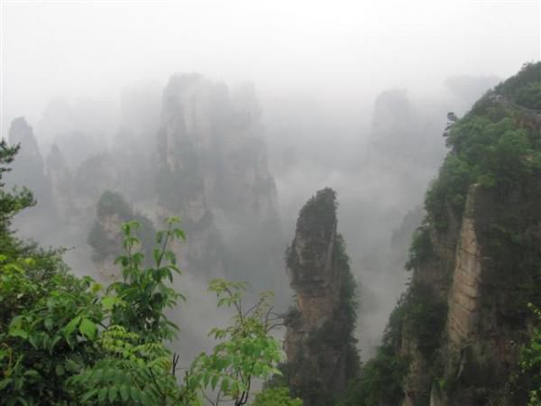 第三天,也是最后一天,是常规的线路。上午仍然在山上—“天子山”景区。游完“天子山”风景区,我们乘索道下山。第一次坐这么有感觉的索道,每当绳索滑到电线杆位置的时候,缆车就会突然的向前向下俯冲一段,突然失重的感觉就象是坐海盗船一样过瘾:)最后的景区叫做“十里画廊”。其实来回也不过7公里,走累的人可以乘小火车来回,不过象我们这样的背包自助游人当然是要坚持到最后,考验自己脚力的极限拉。这“十里画廊”两旁也分布着各个景点,最有名的当数“采药老人”了,惟妙惟肖的矗立在那里,不管你是远观或者近看都相当的形象逼真;无论是春夏还是秋冬,他也都在那里,胡须依旧,背篓里的药材也依旧枝枝桠桠地伸将出来。没办法,谁叫张家界这块世界级自然风水宝地是山常在,树常绿呢?那些山岩峰林的历史是可以追溯到几亿年前呢!