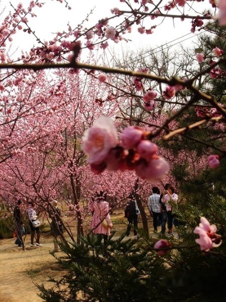 正是开花的时节,植物园几乎是花的天下了,玉兰开着雪白,玉兰的白如玉,润而微青,不是纸样的白。梅花开着正浓,未有暗香。