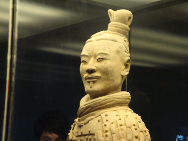 当天是周六,早上起来晚了半个小时,打车到火车站时候已经快9点了。下了车,找不到网上说的专线公交旅游车。(是游5还是游8的,大家自己查查吧)就自己摸索着找,自火车站正面从西向东走,路过火车站正对面一个解放超市啥的,问里面的店员,回答很干脆,不知道,郁闷啊。还好前面有个警察,指了路,原来就在火车站广场上,我走过了,兜个圈折回来,发现去兵马俑的排了好长的队,走到队尾,发现竟然就在那个超市正对面,更加之郁闷。还好是流水发车,没多久就坐上车了。路上售票员推荐我去华清池啥的,由于时间紧,婉拒。到兵马俑不到10点(说是75分钟车程,我这辆车跑得快,1小时吧),买票入内。逛了逛,就那么回事吧,不过在二号坑内单独展出的5个特色俑还是不错的,神态很鲜活。铜车马也很不错 ,号称青铜之冠嘛。出来时候已经12点多了,逛了逛商店,买了兵马俑,蓝田玉镯(我这个人对玉有偏好,去哪里都喜欢买,只要是产的),还有字画啥的。玉镯一定要砍价,看了店主要800多一个的,我最后还了200元成交,心里还是有些后悔,觉得100就可以了。