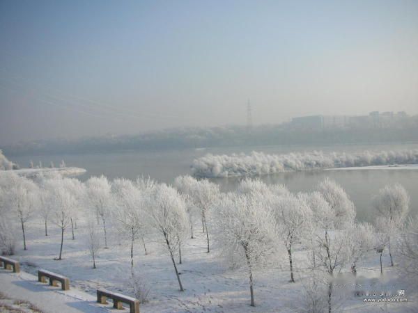 雾凇是其学名,现代人对这一自然景观有许多更为形象的叫法。因为它美丽皎洁,晶莹闪烁,象盎然怒放的花儿,被称为“冰花”;因为它在凛冽寒流袭卷大地、万物失去生机之时,象高山上的雪莲,凌霜傲雪,在斗寒中盛开,韵味浓郁,被称为“傲霜花”;因为它是大自然赋予人类的精美艺术品,好似“琼楼玉宇”,寓意深邃,为人类带来美意延年的美好情愫,被称为“琼花”;因为它象气势磅礴的落雪挂满枝头,把神州点缀得繁花似锦,景观壮丽迷人,成为北国风光之最,它使人心旷神怡,激起各界文人骚客的雅兴,吟诗绘画,抒发情怀,被称为“雪柳”。