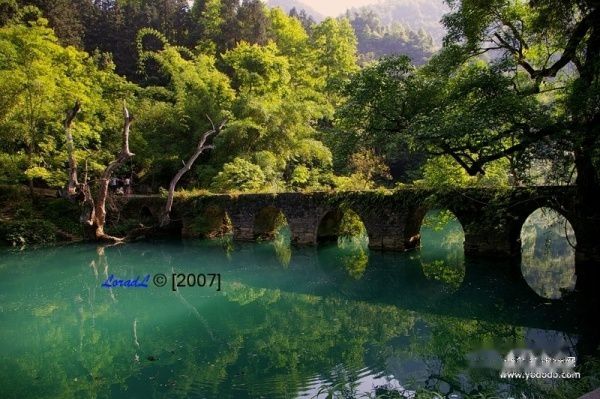 小七孔風景區以精巧、秀美、古樸、幽靜著稱,景區移步換景,布局緊湊。有著名的七孔古橋、68級響水河瀑布、拉雅瀑布、龜背山原始森林、野豬林漏斗森林、天鐘洞、臥龍河生態長廊等景點,更有掩映在森林之中的鴛鴦湖。鴛鴦湖由大小兩個天然湖泊相連而成,大小湖這間有長約700米的“水上林蔭”,兩岸秀木枝蔓成棚。湖區濃蔭四匝,水鳥相呼,境界幽絕。置身其間,有如仙境。