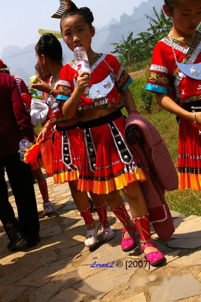 瑤寨中居住著兩片瑤和白褲瑤,區分他們的標準是在著裝上,兩片瑤的婦女穿的上衣是由前后兩片組成,只在肩頭和腰間相連,而白褲瑤則以下身穿白色的褲子而得名。
