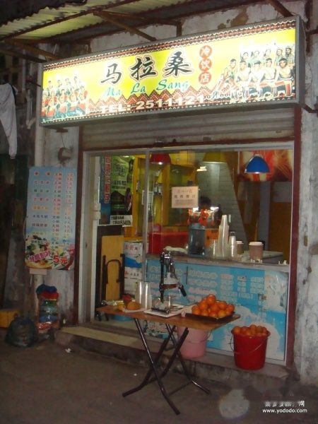 在我们的要求下,老板娘为我们做的木瓜+芒果的混合果汁,好像芒果多了,味道比较大了