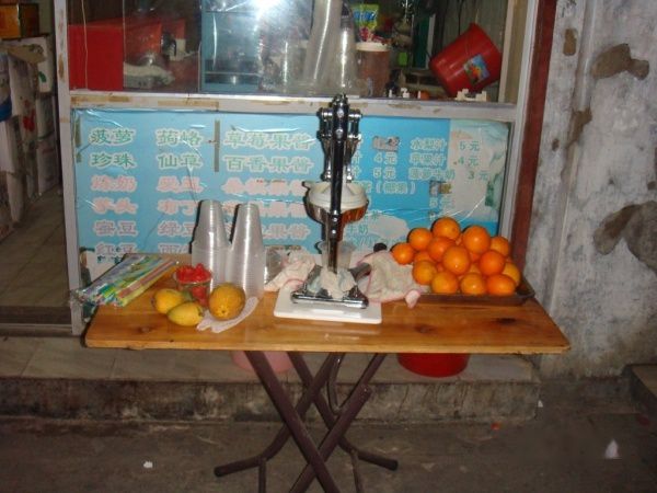 新鲜的水果,当着你的面现榨,我要了杯橙汁,货真价实啊,老板当着你的面一个一个的切,一大杯,差不多5个没有了,呵呵,5块钱很实惠了