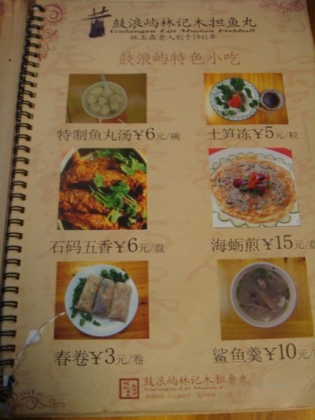 很多人提到的林记鱼丸的菜单,是招牌菜的一页