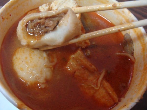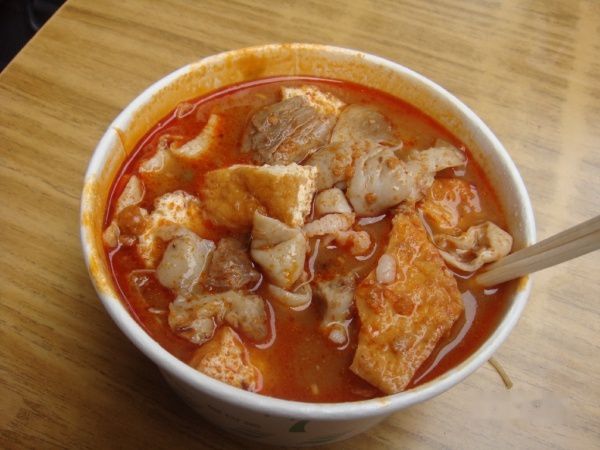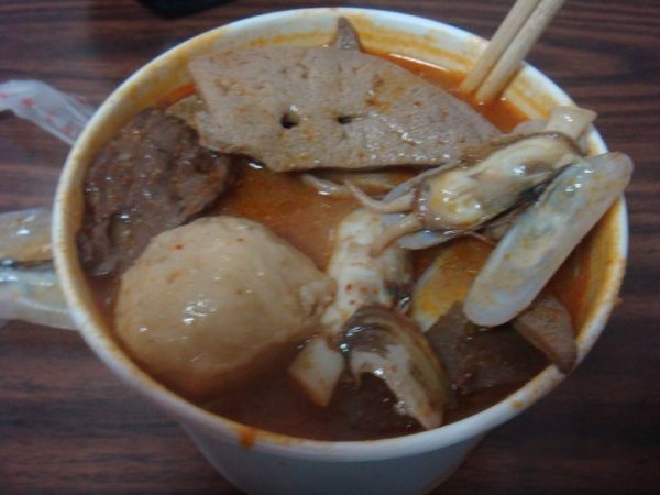岛上的一家没有名字的沙茶缅店,据说是当地人经常光顾的地方,应该算正宗把,按加料的不同价格不一的,我们要了3种,10元。豆腐,大肠,小肠