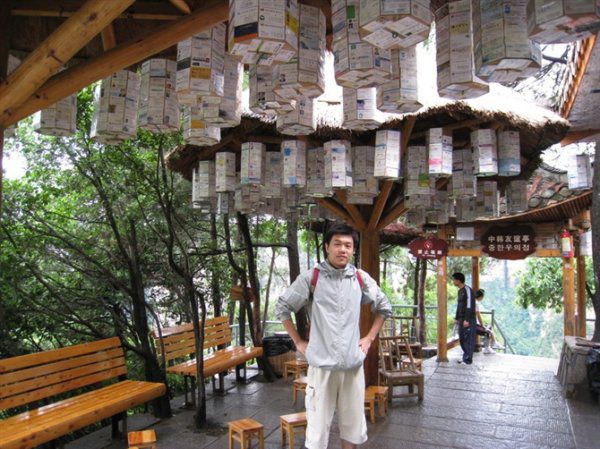 看我们后面的天然石桥叫——仙人桥。98年的时候有位教授从这桥上掉进山谷~~所以现在这桥封着在,还是不要走啊~~留下小命来欣赏美景~~上午游完了大观台四大景点;吃中午饭以后准备下午经典路线;天下第一桥