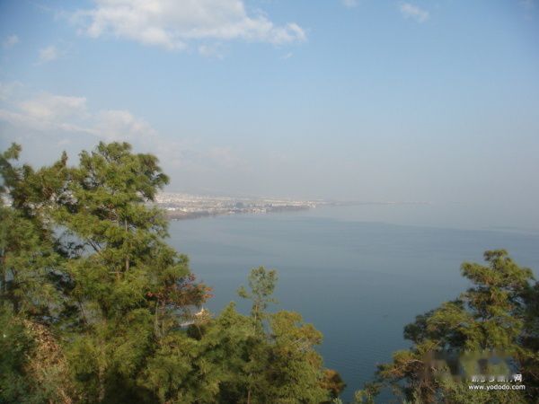 美丽的洱海。大理是个人口不多,风景优美的城市。因电影《五朵金花》而闻名遐迩。我没有看过电影,但还是知道大理的洱海和蝴蝶泉,后来看了金庸的小说《天龙八部》而知道了三塔寺。这次去大理因为时间紧张而只从远处眺望了一下洱海。这是从团山上拍的洱海,海天一色,都是湛蓝。远处就是苍山。洱海的水质是大理人的骄傲,因为花大力气治理,现已接近饮用水的标准。相比之下,昆明的滇池就惨了,据说是一池臭水。