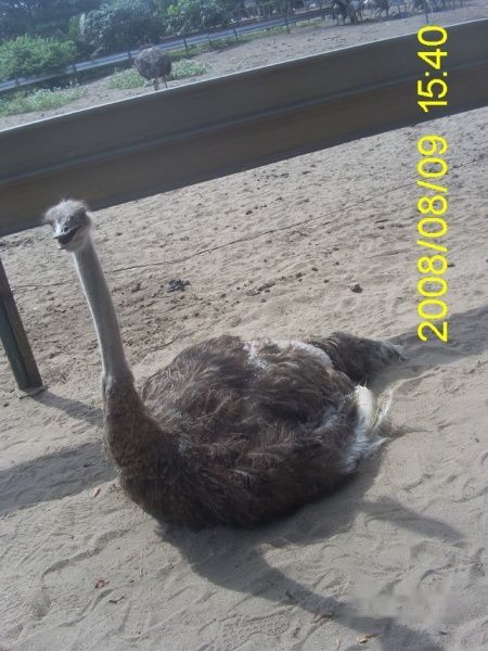 工作人员还解释说:鸵鸟不是聪明的动物,它的脑袋只有花生的大小,当它发怒的时候会发出低嘶声,然后就会冲向目标,用它强而有力的前蹄往前踢目标人物最好扒在地上,以免受到攻击。