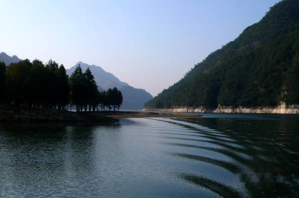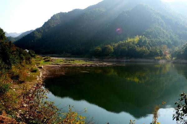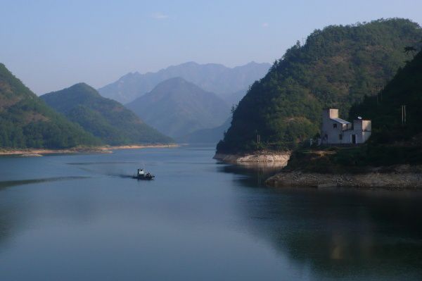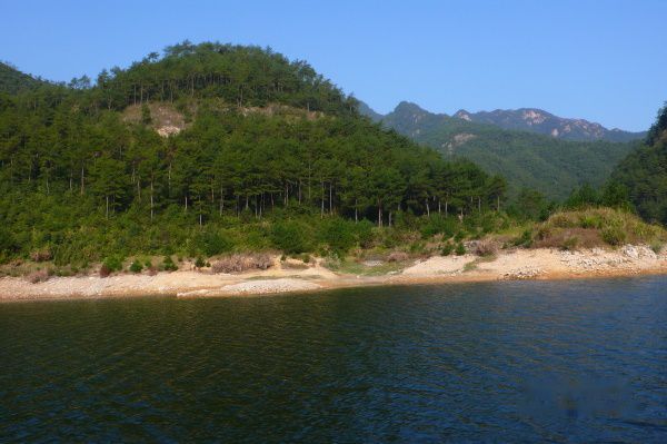 第二天早上8点左右我们很顺利到达芝堰。芝堰也有一些古宅,但比新叶少,我们没能留下较好的照片。穿过村子我们直接去了芝堰水库。在芝堰水库看到的景色给我们留下了深刻的印象。水库大坝较高,有些气势,我们不识路,几经周折爬上坝顶,一见到水库我们就惊住了。真是太美了!山极青,水极清,青山碧水之间一条金色岸带显得极醒目,极美丽。所有的青山、绿水、金岸、蓝天都象一尘不染,面对此景你会忽然觉得远离了尘世,远离了喧嚣,一下进入了一片宁静。心安静了!