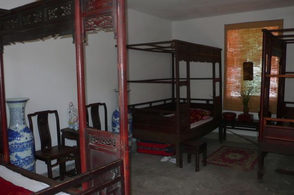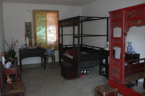 在村中游览时我们发现了一住宿的好去处,真是有些情趣,这就是明香园。明香园是一独门小院,院内有两棵桂花树,香气四溢。小院有一二层小楼,共有三间客房,一间为现代型在一层,另两间为古典型在二层。古典型客房尤有特点,房中家具均为古旧式样,内有文房四宝及其他古旧陈设,感觉甚是书香典雅。我想着在一个古老的村庄,一书生在一个花香四溢的深宅,捧着古老的书卷,倚着床榻,想着远古的事情,渐渐沉入梦乡,想着想着,我闭上了眼睛……。