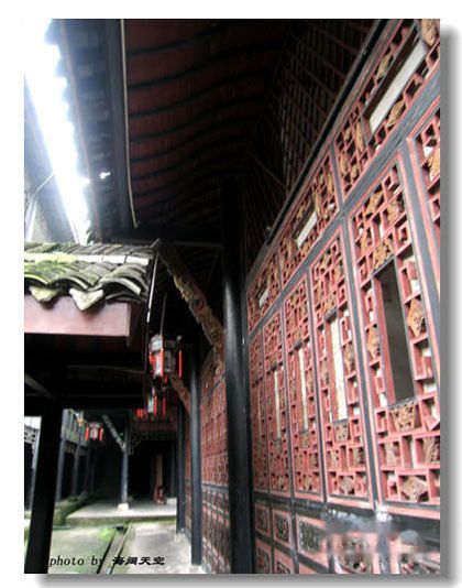 走过一扇扇门,跨过一道道门槛,踱进一百多间房间,那些厚重的乡土文化和厚重的家的观念让每个人都忍不住屏息凝视,生怕惊动附着在上面的古老精魂。古色古香的门窗,雕栏画栋,青砖碧瓦,空气里都是古老的香气,仿佛时间凝固在久远的过去,在此沉淀着,等待人来开启前尘往事。。。。。。