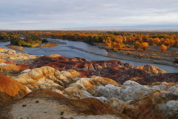 下午一点四十,我们驱车前往布尔津县。该县位于阿尔泰山南麓,准噶尔盆地北缘,喀纳斯旅游区就在该县境内。经过四个来小时的车程,到了布尔津,没进县城先安排拍五彩滩。五彩滩就额尔齐斯河河边,离县城也就二十来分钟的路程。五彩滩属于雅丹地貌,由于河水和雨水的冲刷以及风蚀作用,在阶地斜坡上,沟壑纵横,高低错落,形态优美的山丘分布其上。由于土壤里含有不同的矿物质,在阳光照射下呈现出五彩缤纷的色彩,配上清澈的河水和河谷滩上成片的胡杨林,风光十分秀美壮观!赶上最后一缕阳光,快门声响成一片,只拍到沉入地平线才收起家伙。
