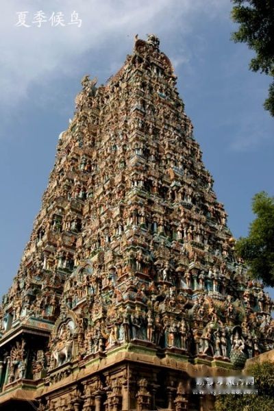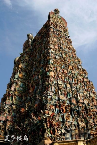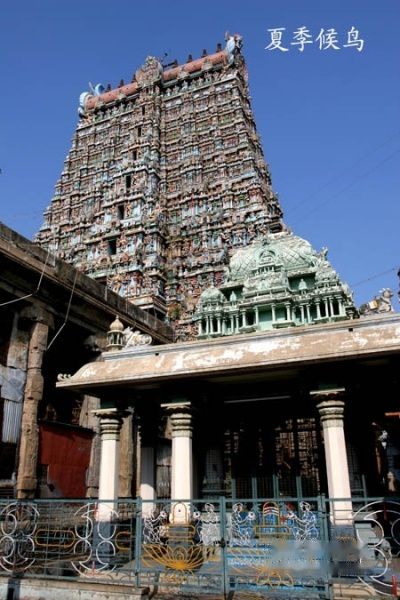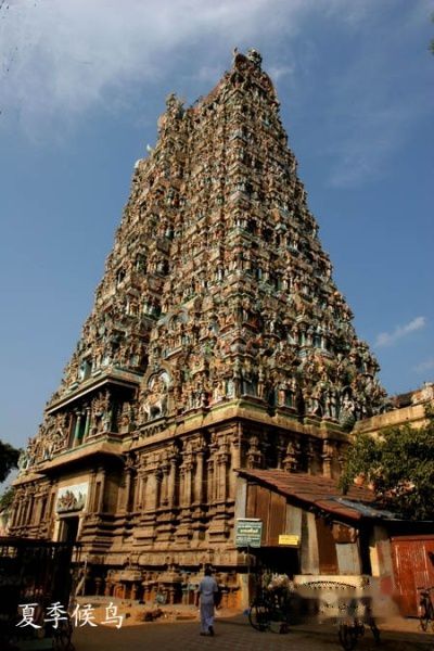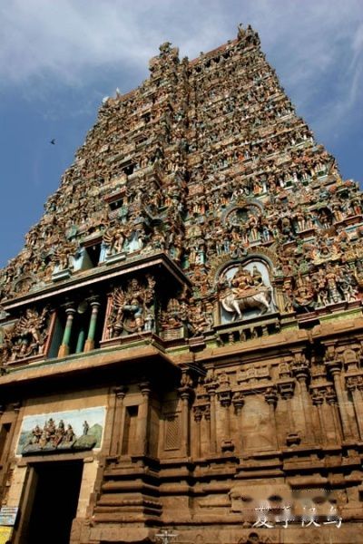 13世纪,朱罗王朝灭亡后,南印度的寺庙建筑风格急剧变化,再也看不到高大的正殿了,寺庙开始扩大面积,由城墙层层包围,四面都建有寺门。寺门的高度大大提高,最终甚至出现了超过60米的寺门,主殿堂和门之间的高度关系已本末倒置了。对此,当我站在马杜赖米纳克希神庙那高耸入云的塔门前,