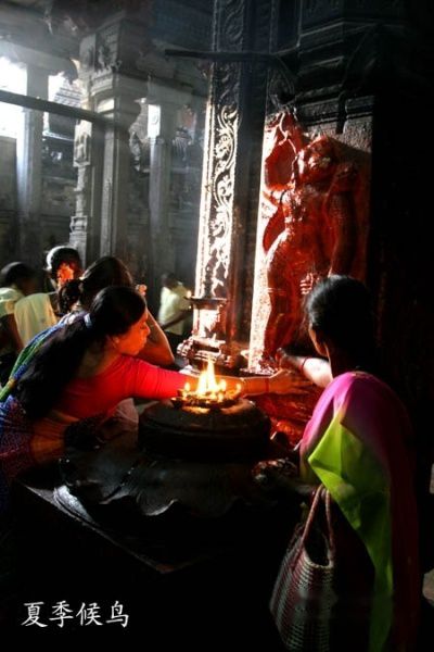 神庙内的大象雕刻,栩栩如生,仿佛正从墙上走下来。 湿婆神庙里供奉着湿婆神的神像,从外面能看到摆设在神殿内的林伽,但不允许非印度教教徒进入;不远处的米纳克希神庙供奉着象征五谷丰收的女神,被大家称为“手持鱼眼的女神”。她原本是达罗毗荼民族的土著女神,在当地非常受人尊敬,后来随着印度教势力的不断强大,传说她与印度教的湿婆神结了婚,便将她当作湿婆神的妃子来供奉了。而她原来的丈夫则降格成为米纳克希的哥哥。这里是非印度教教徒不能领略的圣地,但这里却有着甚至可以吸引非印度教教徒的强烈的文化力量。