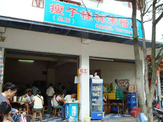和狗儿磨磨到了半夜两三点才入睡,睡之前到我一手策划的线路再重新审核一次,谁叫来的那天太急了,没好好看过线路,只是把别人的游记线路抄了下来而以,到了这里,要好好温温习一下,和狗儿和老猪通报,大家心里有个底。真是服了我地两只痴妹了,天光七点几钟又溜起身了,精神饱满,兴奋得要命,起个大早,武装武装,把防晒霜涂上,免得一天就把我晒成火栌棍敢就麻烦咯,已经决定好到当地有名的“瘦子米粉”吃桂林米粉,哈哈,我地理方向感实在不好,想充当一下向导居然行错路,激死人,不过在半路碰一个陈大姐,后来成了我们当天的地陪,虽然带我们去的地方或许会有些回扣,不过也不容易,陪我骑一天的单车,从早到晚,只需付她二十元人民币,中途在景区的时候要帮我们看管单车,直到我们出来。