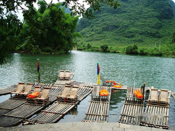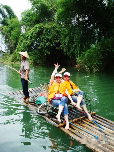 一切OK了以后,就先到遇龙河去竹筏漂流,不在售票点买票,直接和筏工讨价,最后以一百三一个筏成交,租了两个筏,可第二天在当地的小旅行社里询价才知道付多了五十元,第一次去没有经验,被多收了,下次不会再上当了。