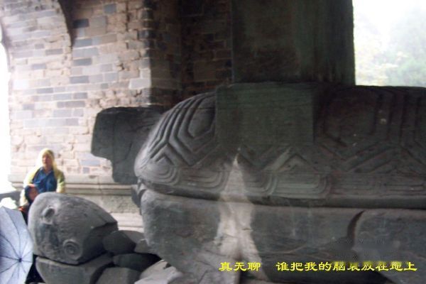 内有硕大的龟碑,石龟有一人多高,龟背上立着4米多高的石碑,虽碑文模糊难辩,但很雄伟,可惜,龟的脑袋断在地上了。东西殿红壁绿瓦,殿内的神仙坐像和殿外的香炉道场显得古朴壮观。