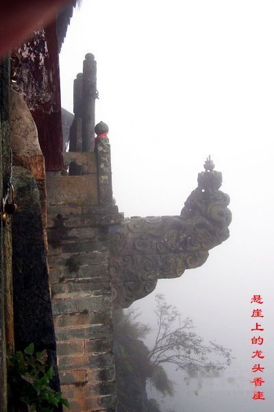 像,神像对面是活动的上窗下门,打开后就是挑出悬崖的龙头香座,猜想敬这样的香,恐怕不是一般的香客能用,除了帝王就是道长之辈了。