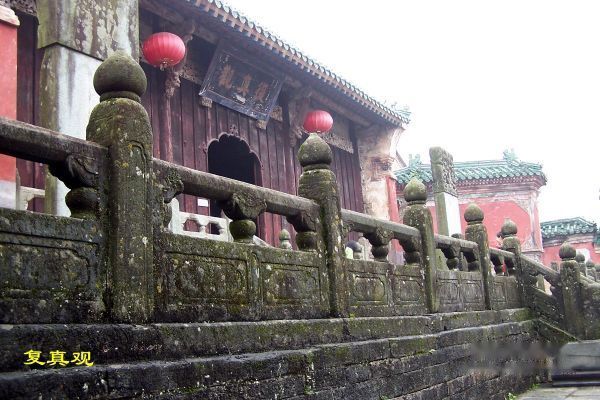 上,因此而得名太子坡。 复真观建在武当山狮子峰60度的陡坡上,据记载,明永乐十年,明朝皇帝朱棣,敕建玄帝殿宇、山门、廊亭共20多间。后明朝皇帝朱厚聪登基后的三十二年,扩建殿宇至200多间。清代康熙年间,曾先后三次修葺。清代乾隆二十年至二十六年又重修大殿、山门等殿宇。之后又因年久失修,损坏严重。直到了九十年代初期,国家投资修缮,才恢复了本来面目。