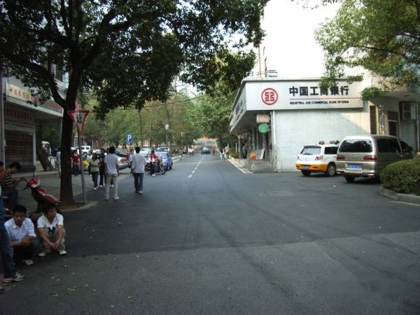 顺着这条路往前,走到停车标志处左转,进入湖南师大校区,500米左右可看见岳麓山风景区的招牌。