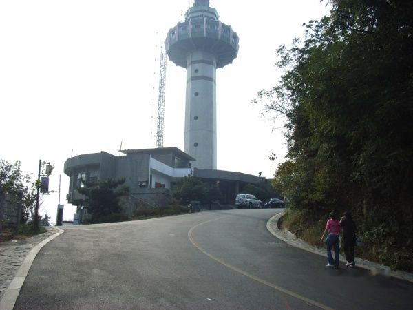 速度快的话二十分钟即可走上大路,这条水泥路是东大门上山的路,上路一眼就可看见长沙电视台的发射塔。在图中停车处又有两景区管理人员查票的,躲在隐蔽的位置,图上看不见,走到跟前就看见了,嘿嘿。但他们明显不怎么用心,正常情况下坐门口聊天,看经过的人多了或明显像逃票的就起来查一下,这样起来一次可能保证有收获吧。我去的时候一个人就大摇大摆的过去了,他们也没起来。如果心理素质不好可以从马路右边爬上去,难度不大。